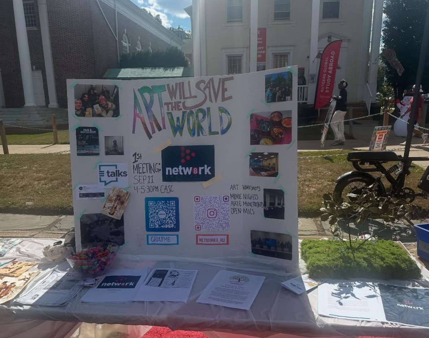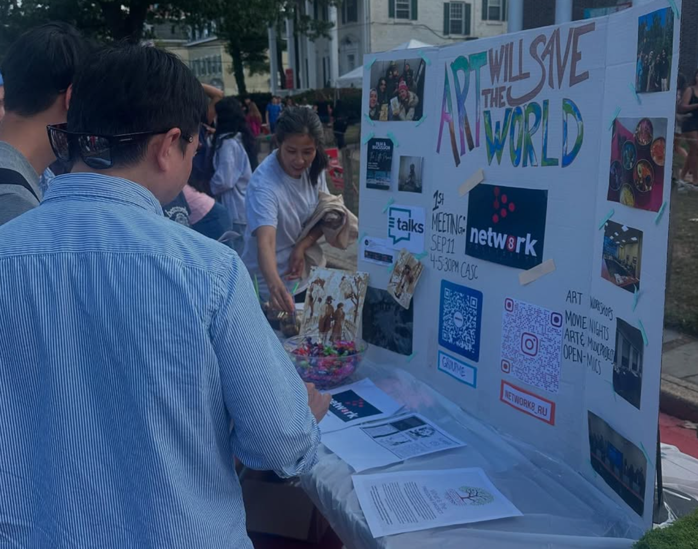 On a vibrant day at Rutgers University, Network 8 participated in the annual Involvement Fair, connecting with the campus community and sharing our vision for the upcoming semester. Our booth served as a creative hub where art, dialogue, and community care came together.